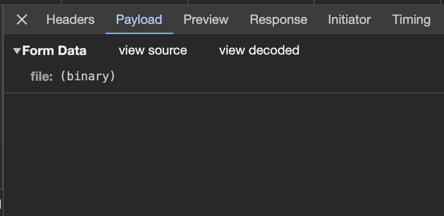 payload를 보면 Form Data 안에, file: (binary)가 저장되어있는 것을 볼 수 있다.